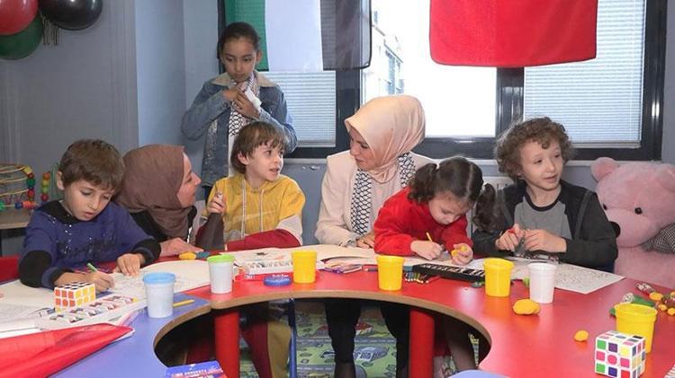 Ziyaret sırasında Filistinli misafirlerin isteklerini dinleyen Bakan Göktaş, çocuklarla birlikte resim ve el işi etkinlikleri yaptı