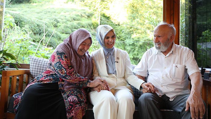 Aile ve Sosyal Hizmetler Bakanı Mahinur Özdemir Göktaş, Rize’de 63 yıllık evli Mükerrem (80) ve Ahmet Kanbur (85) çiftini evlerinde ziyaret etti. Bakan Göktaş, “Sizin gibi aynı yastığa baş koyarak hayatı paylaşan çiftler, gençlerimize en güzel örnek oluyor” dedi.