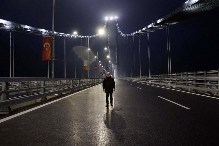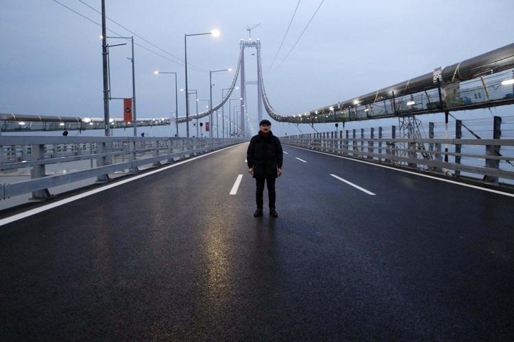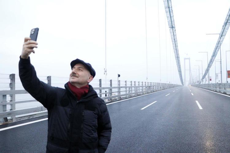 Ulaştırma ve Altyapı Bakanı Adil Karaismailoğlu, yarın Cumhurbaşkanı Recep Tayyip Erdoğan tarafından açılışı gerçekleştirilecek 1915 Çanakkale Köprüsü'nde, gün doğumunu Avrupa’dan Asya’ya yürüyerek karşıladı.