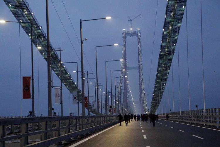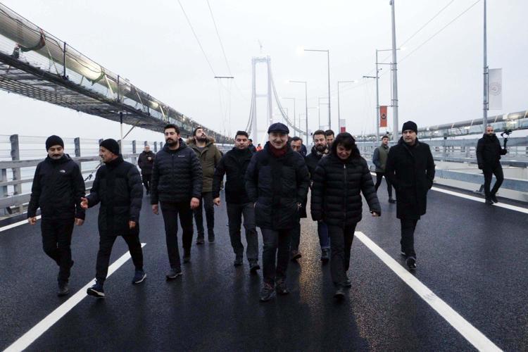 Yürüyüş, Lapseki ilçesindeki Şekerkaya ÅŸantiyesinde sona erdi. Köprü üzerinde gün doÄŸumunu izleyen Bakan KaraismailoÄŸlu, beraberindekilerle hatıra fotoÄŸrafı da çektirdi.Â