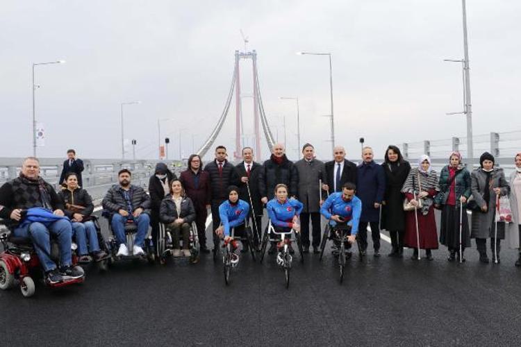 Ulaştırma ve Altyapı Bakanı Adil Karaismailoğlu, yarın Cumhurbaşkanı Recep Tayyip Erdoğan tarafından hizmete açılacak olan 1915 Çanakkale Köprüsü'nde, Türkiye'nin değişik kentlerinden gelen görme ve bedensel engelli vatandaşlar ile birlikte yürüdü. Gelibolu gişelerde açıklama yapan Bakan Adil Karaismailoğlu, Çanakkale'nin, Türk milletinin kaderinin çizildiği yer olduğunu belirterek, şunları söyledi:"Bir nesil cihan harbinde şehit oldu ama onlar sayesinde bir millet bağımsızlığına kavuştu. Bu toprakların kıymeti tarif edilemez. Bir hilal uğruna, tertemiz alnından vurulan, bir gül bahçesine girercesine kara toprağa giren aziz şehitlerimize Allah’tan rahmet diliyoruz. Böyle bir mirası devralmış bizlere ise düşen iki görev var. Bu destanı yazan ecdadımıza saygımızı sunmak ve onlardan öğrendiğimiz gibi gelecek nesillerimize üzerinde yükselebilecekleri bir armağan bırakmak. İşte bugün, bu vazifemizi yerine getirdiğimiz gündür. Çanakkale Deniz Zaferi’nin 107'nci yıl dönümünde, 2023 vizyon projelerimizden olan Malkara-Çanakkale Otoyolu ve 1915 Çanakkale Köprümüzü hizmete açıyor olmanın haklı gururunu ve onurunu yaşıyoruz. Sayın Cumhurbaşkanı’mızın teşrifleriyle yarın, Malkara-Çanakkale Otoyolu ile birlikte, yolun altın halkası olan 1915 Çanakkale Köprümüzün açılışını yapacağız.1915 Çanakkale Köprüsü; adı, mimari tasarımı ve teknik özellikleri ile aziz şehitlerimizin hatırasını da bağrında taşıyan, Çanakkale Boğazı’na vurulan mühür ve eşsiz bir abidedir."