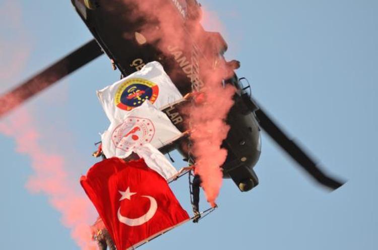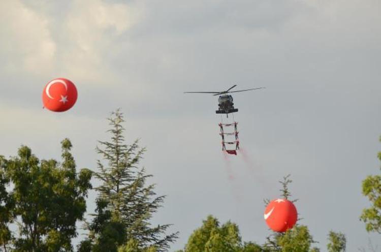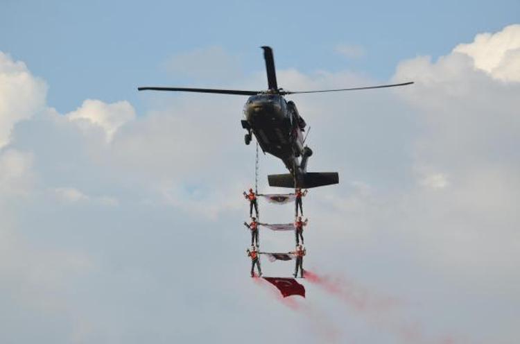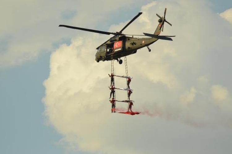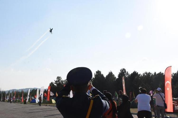 Konuşmaların ardından 30 Ağustos Zafer Bayramı’nın 100’üncü yılı nedeniyle düzenlenen programda Türk Hava Kuvvetleri’nin göz bebeği SoloTürk gösteri uçuşu yaptı. Tören alanını dolduran binlerce kişi Kütahya semalarında gösteri yapan SoloTürk’ü ilgiyle izlerken, nefes kesen anları cep telefonlarına kaydetti. SoloTürk’ün uçuş gösterileri sırasında mehter marşı çalındı. Hemen ardından havalanan Jandarma Genel Komutanlığı, Çelik Kanatlar helkopteri ve Özel Asayiş Komutanlığı ekiplerinin ‘üzüm salkımı’ gösterisi de ilgiyle izlendi.