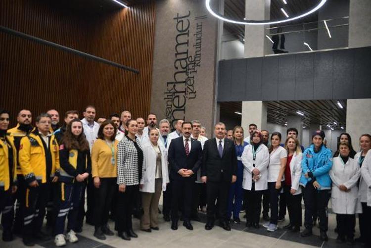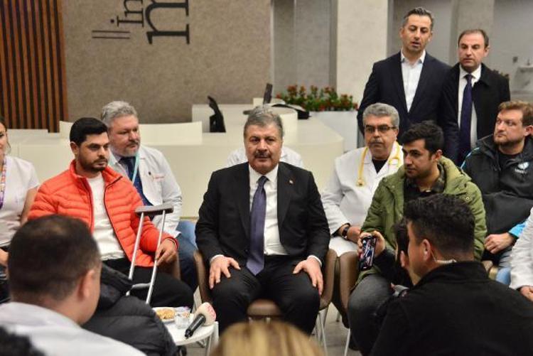 Bakan Koca, enkazdan 261 saat sonra kurtarılan Mustafa ve Mehmet Ali ile buluştu