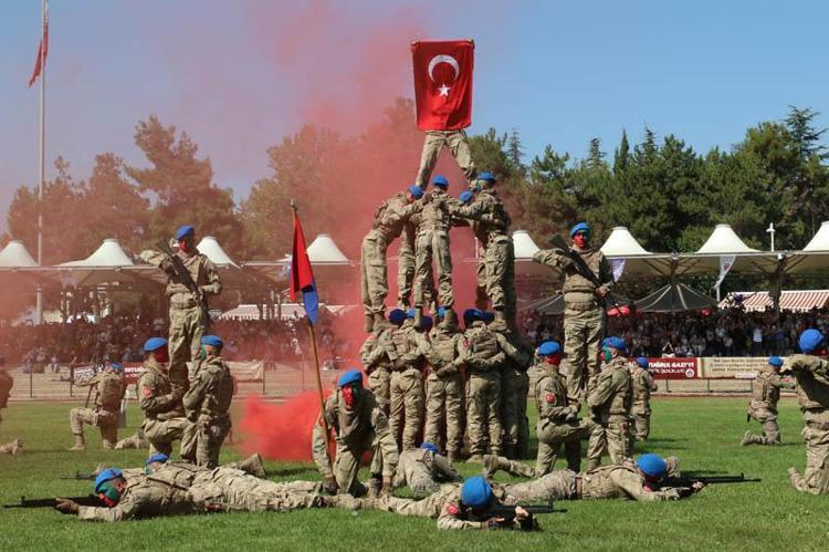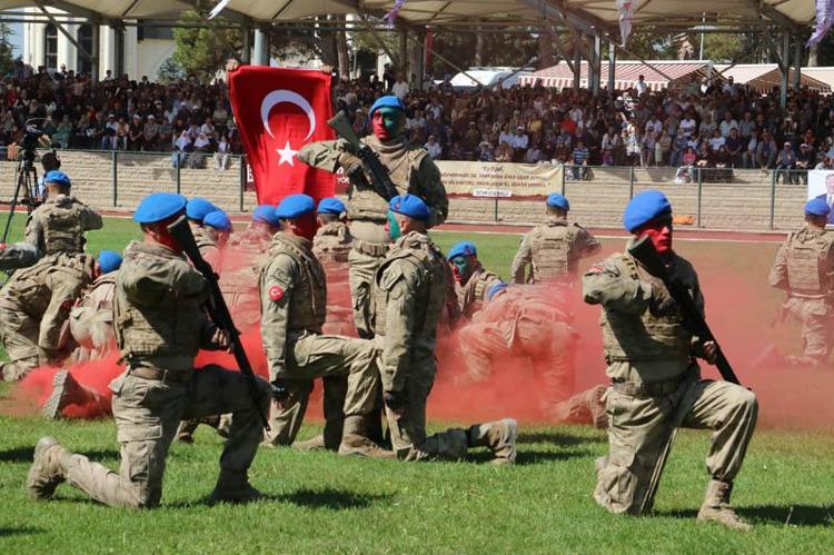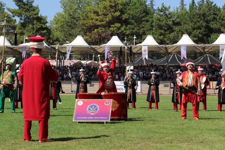 744’üncü Ertuğrul Gazi’yi Anma ve Yörük Şenlikleri’nde Jandarma Genel Komutanlığı Merasim Bölüğü gösteri yaptı. Askerlerin, birbirinin üzerine çıkarak oluşturduğu kuleden Türk bayrağı açmaları, ayakta alkışlandı. Mehteran ve Çelik Kanatlar helikopter gösterisi de ilgiliyle izlendi. Kutlama programı Jandarma Genel Komutanlığı Bandosu eşliğinde tören geçişiyle sona erdi. Bakan Yerlikaya, programın ardından Söğüt ilçesinden ayrıldı.