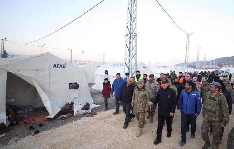 Burada yemek yiyen vatandaşlarla ve ekiplerle görüşen Akar daha sonra buradan sanayi bölgesi yakınlarında kurulan çadır kenti ziyaret etti. AFAD yetkililerinden çadır kent hakkında bilgi alan Akar, bölgenin güvenliğinden sorumlu Mehmetçik’ten çalışmalara ilişkin brifing aldı, talimat verdi.