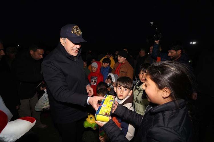 Çadır kenti de ziyaret eden vatandaşlarla bir araya gelen Akar, çocuklarla yakından ilgilendi, onlara oyuncak hediye etti.