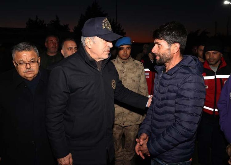 Merkez üssü Kahramanmaraş'ın Pazarcık ve Elbistan ilçeleri olan ve 11 ili etkileyen 'asrın felaketinin' hemen ardından beraberindeki Genelkurmay Başkanı Orgeneral Yaşar Güler ve Kara Kuvvetleri Komutanı Orgeneral Musa Avsever ile Hatay’a gelen Akar, Mehmetçiğin kentteki nöbet, devriye, arama kurtarmanın yanı sıra yaşam destek faaliyetlerini ilk günden itibaren yerinde takip ediyor. Kırıkhan, İskenderun, Samandağ ilçelerindeki çalışmaları inceleyen Akar, Sağlık Bakanı Fahrettin Koca ile Altınözü ve Antakya ilçelerine de giderek depremin ardından yapılan çalışmalara ilişkin bilgi aldı.