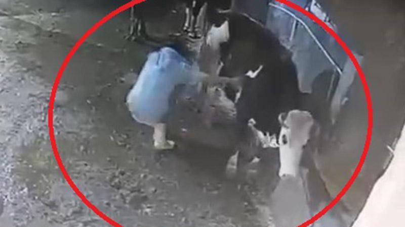 Diyarbakır'ın Çermik ilçesinde besici Şehmuz Demir, bakımını yaptığı ineği tarafından tekmelendi. Demir, aldığı darbeyle savrulurken, o anlar güvenlik kamerasına yansıdı.