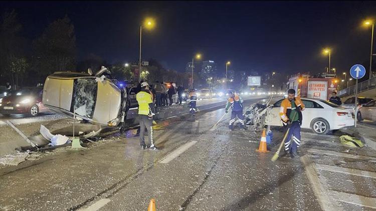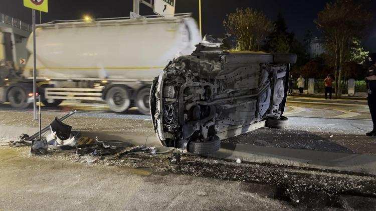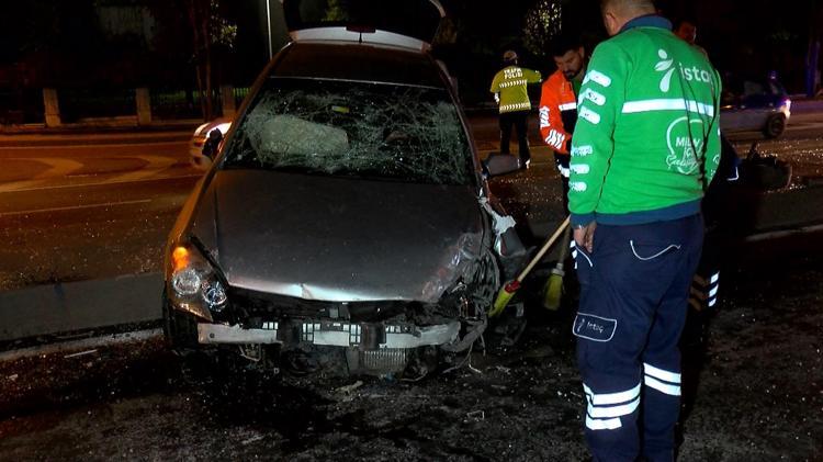 Bakırköy’de sürücüsünün direksiyon hakimiyetini kaybettiği otomobil, refüjü aşıp karşı yönden gelen bir başka otomobille çarpıştı.