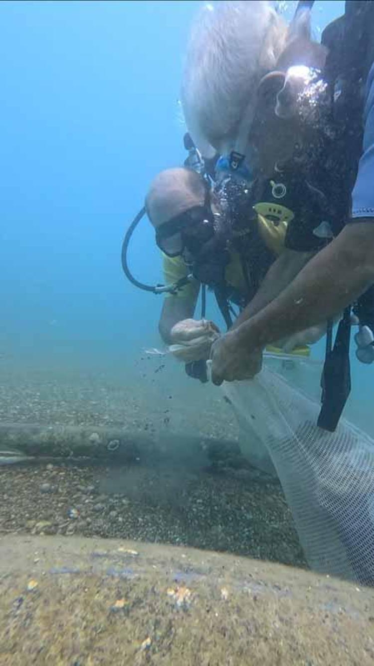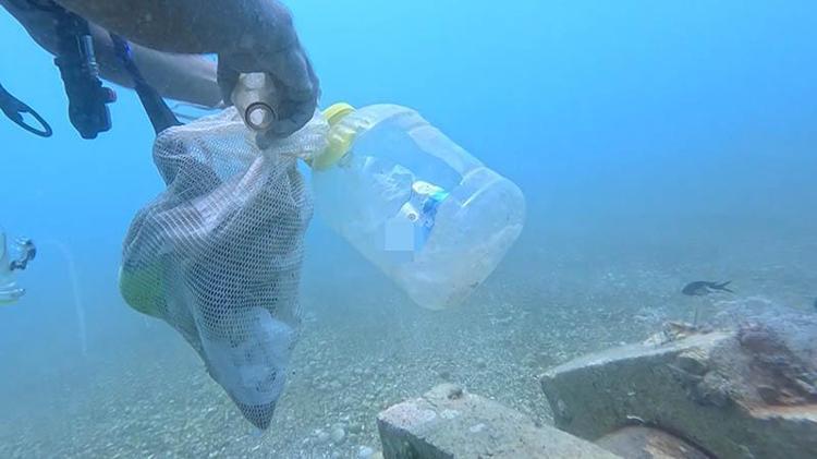 Prof. Dr. Mehmet Gökoğlu ve ekibi, deniz dibi temizliği sırasında kirlilik oluşturacak materyallerle karşılaştı. Dalışlarda en çok sigara izmariti, ıslak mendil, poşet ve pet şişe gibi atıklar bulundu. Özellikle amatör balıkçılar, balık tutmak için pet şişeleri kesip içine çakıl ve ekmek koyarak denize bırakmaya başladı. Bu şişelerin zamanla suyun dibine sürüklenerek kirlilik oluşturduğunu belirten Prof. Dr. Gökoğlu, farklı boyutlarda yüzlerce pet şişe bulduklarını söyledi. Deniz dibinde ayrıca akü, çapa ve yiyecek kapları gibi farklı atıklara da rastlandı.