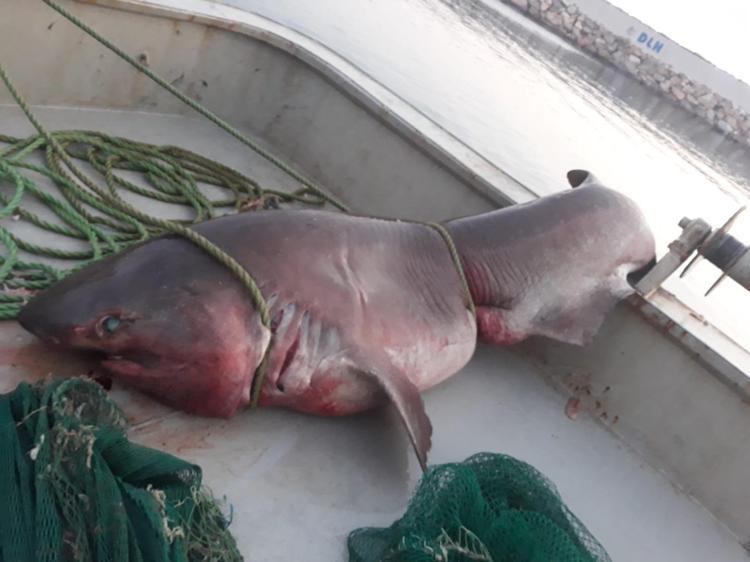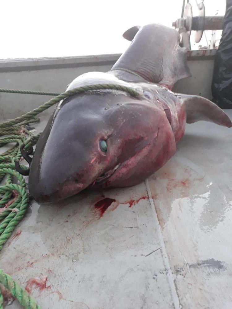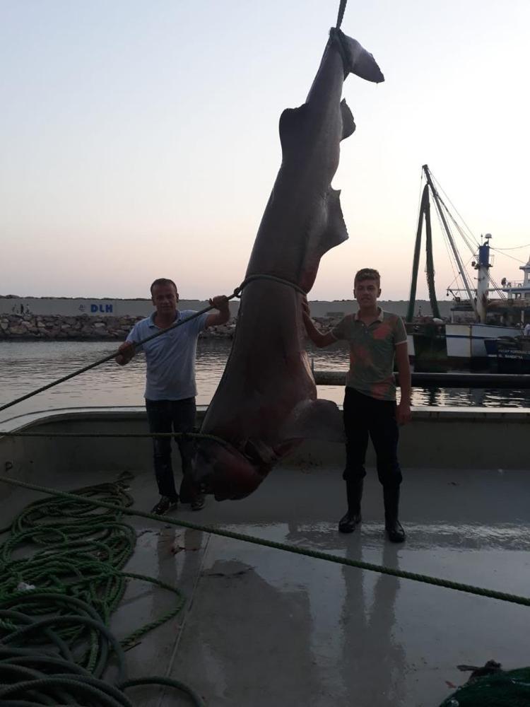 HaberlerFoto Galeri Haberleri Balıkçı ağına 1 tonluk köpek balığı takıldı Balıkçı ağına 1 tonluk köpek balığı takıldıÇanakkale'nin Ayvacık ilçesi Babakale açıklarında balıkçı ağlarına, 5 metre uzunluğunda ve 1 ton ağırlığında camgöz cinsi köpek balığı takıldı. • Son Güncelleme: 22 Ağustos 2019 - 09:55 • Son Güncelleme: 22 Ağustos 2019 - 09:551234