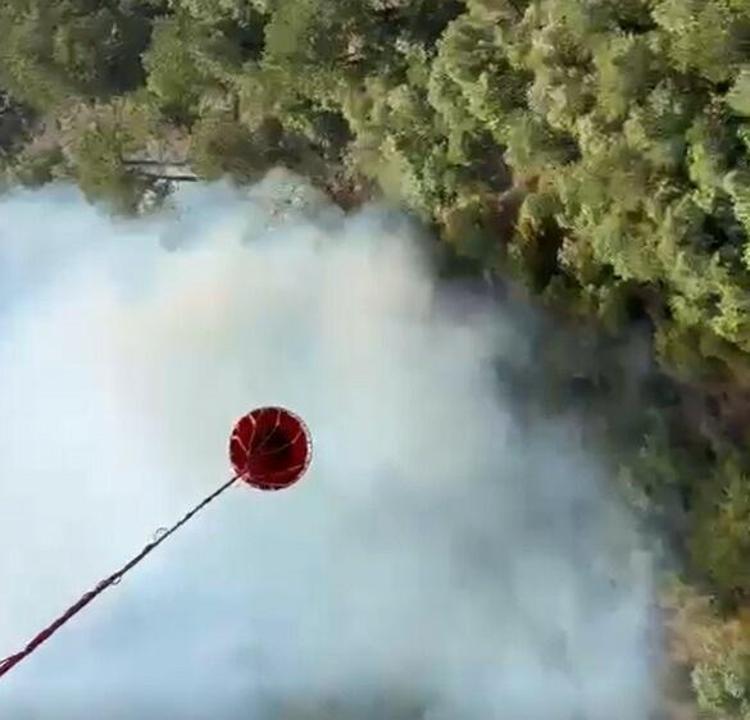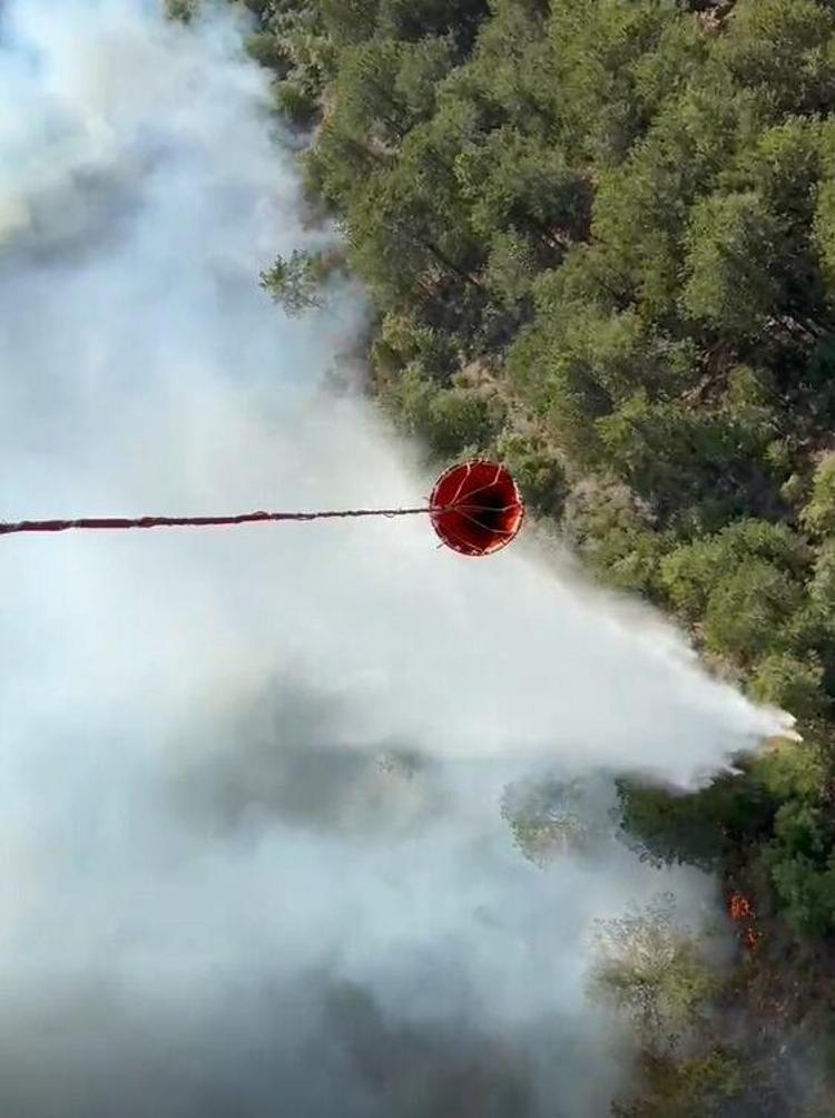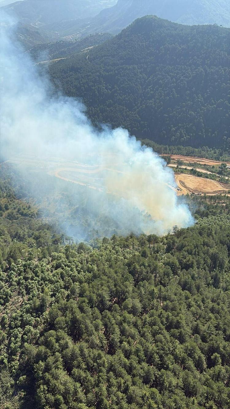 Bölgeye toplam 3 uçak, 4 helikopter ve 6 arazöz ile 2 su ikmal aracı sevk edildi. Ekiplerin alevlere karadan ve havadan müdahalesi devam ediyor.