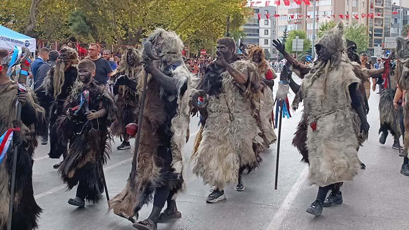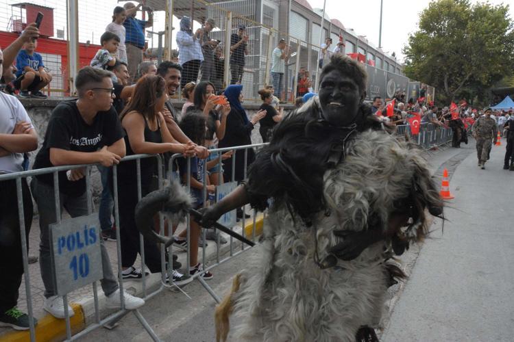 Keçi ve koyun postu giyen, yüzlerini ve vücutlarını baca kurumuyla boyayan, korkutucu halleriyle savaş dönemindeki Tülütabakları canlandıran grup, etkinliğe katılanların üzerlerine doğru koşup, yüzlerini siyaha boyadı. Vatandaşlardan bazıları boyanmamak için tören alanından uzaklaşırken, bazıları da o anları cep telefonu kamerasıyla kaydetti. (DHA)