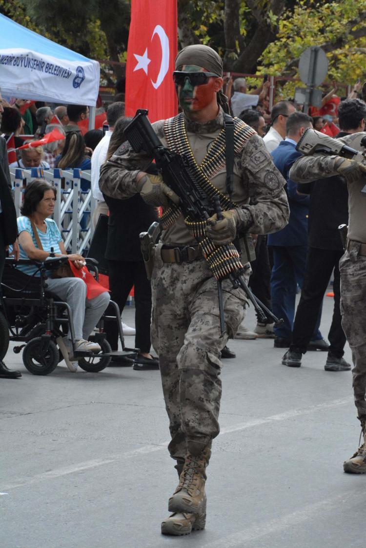 Anıta çelenklerin konulmasının ardından, Balıkesir Valisi İsmail Ustaoğlu, Garnizon Komutanı Hava Pilot Gökhan Gürakar ve Balıkesir Büyükşehir Belediye Başkanı Ahmet Akın askeri araç üzerinden halkı selamladı. Balıkesir milletvekilleri, kurum ve daire müdürleri ile çok sayıda vatandaşın katıldığı program, saygı duruşu ve İstiklal Marşı'nın okunmasıyla başladı. Günün anlam ve önemini anlatan şiir sunumları sonrası geçit töreni yapıldı. Kutlama etkinliklerinde Milli Savunma Bakanlığı Mehteran Birliği de yer aldı.