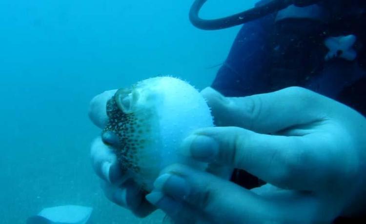Akdeniz ve Ege'de balıkçıların korkulu rüyası balon balığı, deniz suyunun ısınması ile yeniden kıyılara yaklaştı. Akdeniz Üniversitesi'nden Prof. Dr. Mehmet Gökoğlu, dipteki besinleri paletle havalandıran dalgıçları takip eden bir balon balığı türünü görüntüledi. Prof. Dr. Gökoğlu, avuçlarına alıp sevdiği türe 'Şirinler' adını verdi.