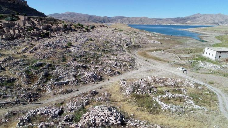 Baraj suları çekildi; eski mahalle ortaya çıktı