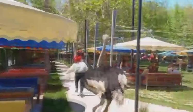 Barınaktan çıkan deve kuşu, kafe bahçesindeki müşteriyi kovaladı