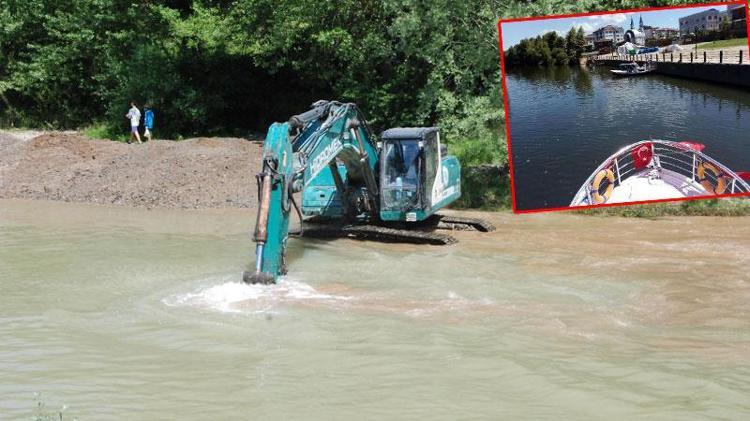 Bartın Irmağı'nda turistik gemilerin geçemediği alanda derinleştirme çalışması
