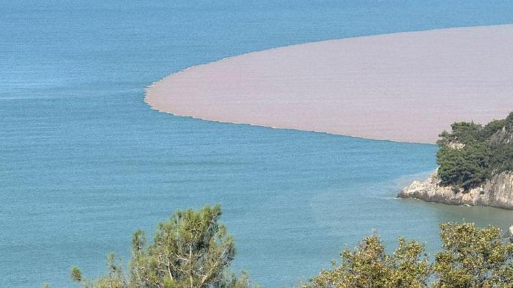 Bartın'da 2 gün önce etkili olan yağışın ardından nehrin taşıdığı çamurlu su, denizin rengini değiştirdi. Bartın Irmağı'nın denize döküldüğü bölgede suyun rengi kahverengiye döndü.