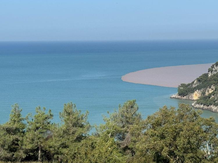 Ilgaz Dağları’ndan doğup, Bartın’ın dağlık alanlarından geçerek yaklaşık 15 kilometre kateden Bartın Irmağı'nın taşıdığı çamur, denize döküldüğü noktada suyun rengini değiştirdi.