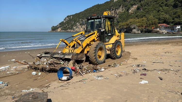 Bartın Irmağı’ndan gelen çöpler ve atıkların bulunduğu 3 kilometrelik İnkumu Plajı’nda Bartın Belediyesi ekipleri tarafından çalışma başlatıldı.