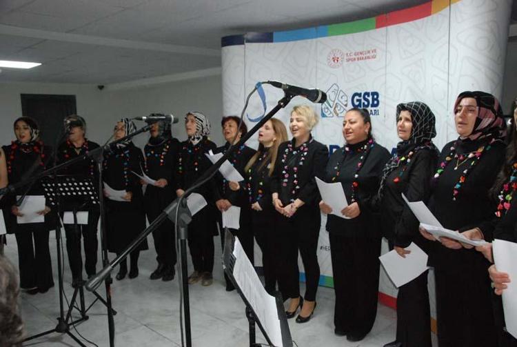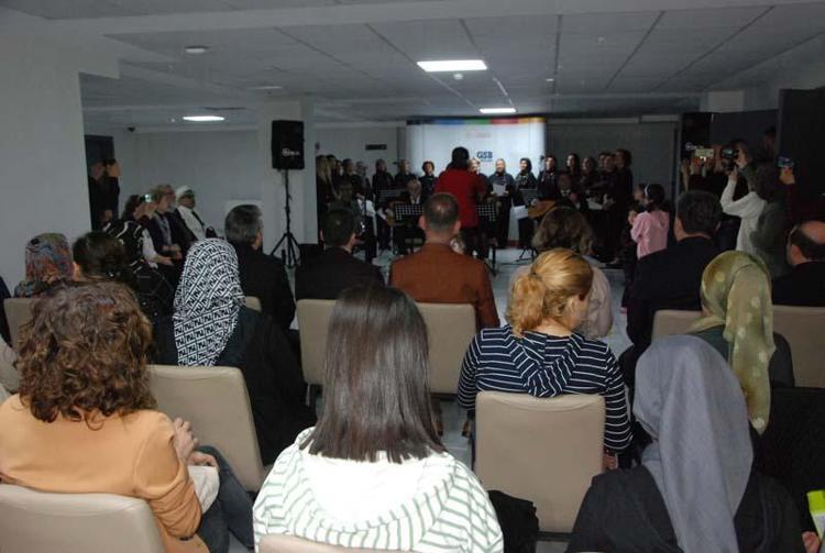 Resim sergisi ve el işleri sergisi açılışının ardından şef Sezen Öztaş yönetimindeki 15 depremzede kadından oluşan Türk sanat müziği korosu sevilen 5 şarkıyı seslendirdi.