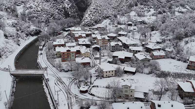 Bartın-Kastamonu kara yolunun Soğucaksu Geçidi’nde ve Drahna vadisinde kar yağışı etkili oldu. Yolda aksama yaşanmazken, bölgedeki manzaralar dronla görüntülendi.