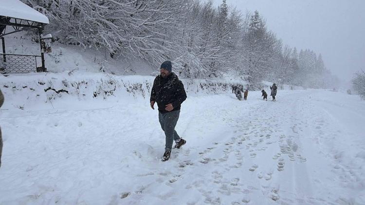 Bartın'ın Ulus ilçesi ile Kastamonu Pınarbaşı ilçesini birbirine bağlayan kara yolunun 1030 rakımdaki Soğucaksu Geçidi’nde kar yağışı etkili oldu. Bölgede kar kalınlığı 40 santime ulaştı. Karayolları ekipleri kar küreme çalışması yaparak yolu ulaşıma açık tuttu. Bölgedeki kar ve sis manzarası, dronla görüntülendi. Soğucaksu Geçidi’ne çocuklarıyla birlikte gelenler beyaz örtünün keyfini doyasıya çıkardı. Kar topu oynayan çocukların aileleri de eksi 5 derece soğukta ısınmak için ateş yaktı.