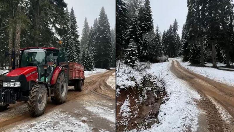 Bölgedeki orman işçileri, beyaz ile kaplanan alanları fotoğraflayıp, sosyal medyadan paylaştı. Kar yağışı, kısa süre sonra etkisini kaybetti.