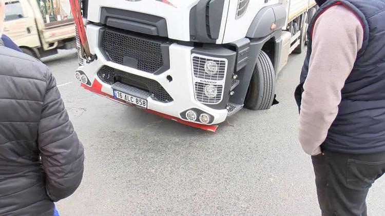 Olay, Ziya Gökalp Mahallesi Bedrettin Dalan Bulvarı'nda saat 12.00 sıralarında meydana geldi. Erkan Ödemiş idaresindeki 16 ALC 858 plakalı demir sac yüklü kamyon caddeden ara sokağa girmek için manevra yaptı. Kamyonun ara sokağa dönmek için durduğu sırada asfaltın bir bölümü çöktü. Çökmeyle kamyonun ön tekerleği çukura düştü. Kamyon şoförü durumu polis ekiplerine bildirdi. Polisin incelemelerinin ardından olay yerine vinç çağırıldı.