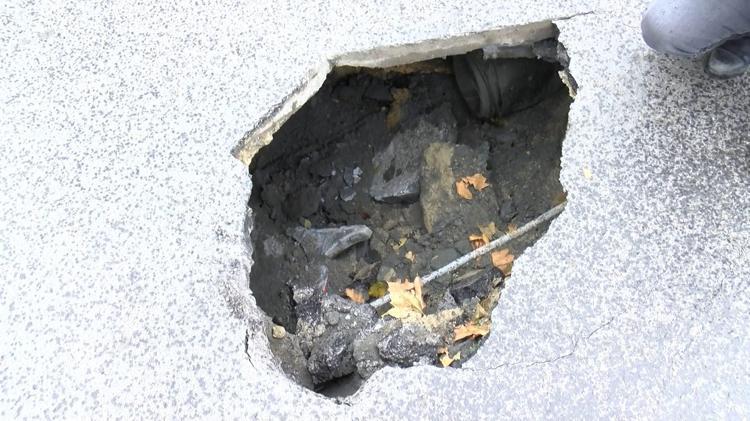 Asfalt çöktü ve aracım birden bire asfalta oturdu. Çukurun içine baktık, çukurun içi bomboş.