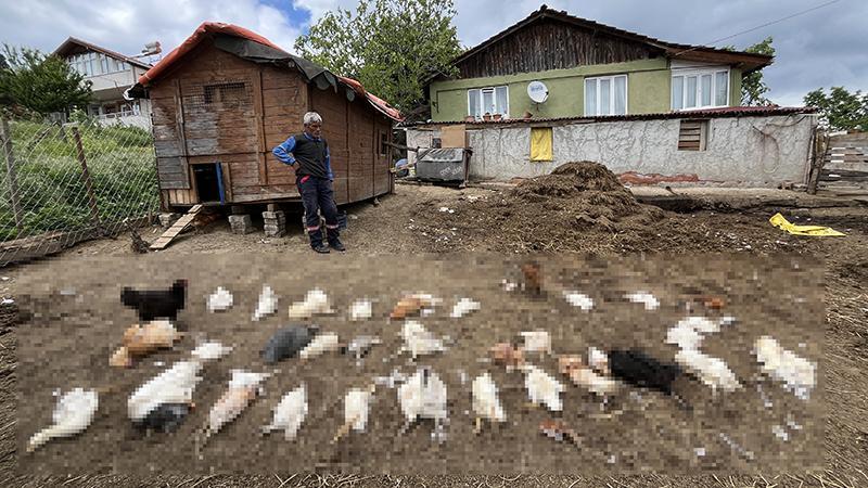 Kocaeli’nin İzmit ilçesinde hayvancılıkla uğraşan emekli Halil Sessiz’e (64) ait evin bahçesine giren 2 başıboş köpeğin saldırısında tavuk, civciv ve ördeklerin olduğu 80 kümes hayvanı öldü. Halil Sessiz, “Köpekleri ormanlara, milletin görmediği yerlere, bütün bu köy civarına bırakıyorlar; millete zarar veriyorlar. Yazık, günah. Bu, bugün bana ise yarın komşuya olacak” dedi.