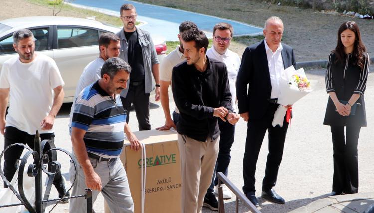 Erzurum'da, gürültü yaptıkları gerekçesiyle şikayet ettiği komşuları tarafından tekme ve sopayla darbedilen yüzde 80 bedensel engelli Esin Sarıaslan'ın (48) kırılan sandalyesinin yerine Erzurum Büyükşehir Belediye Başkanı Mehmet Sekmen yeni bir akülü tekerlekli sandalye gönderdi.
