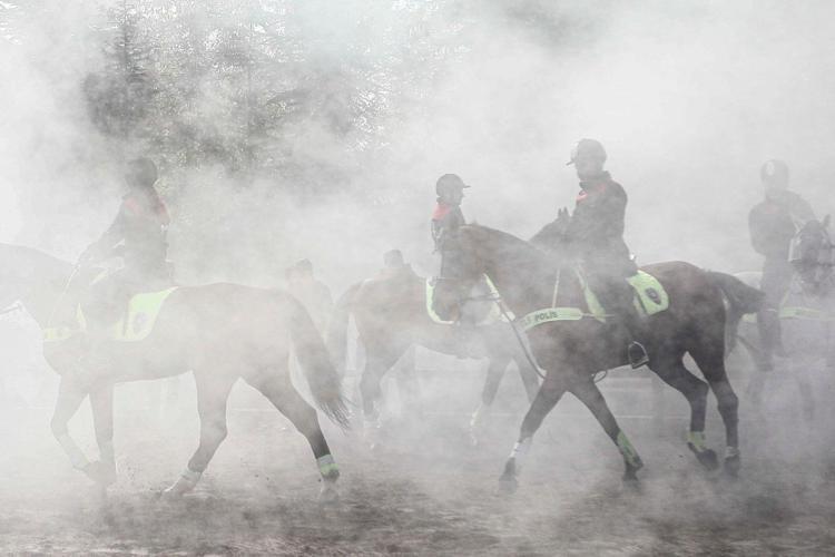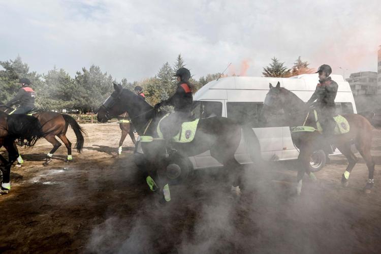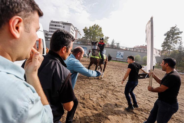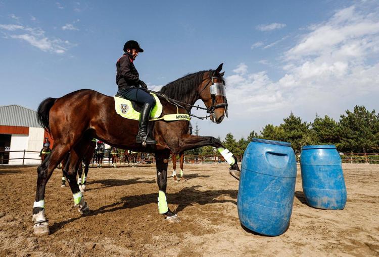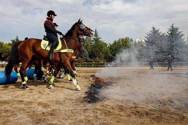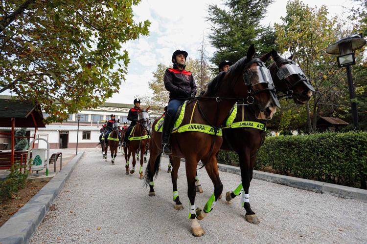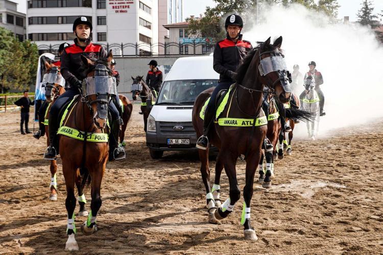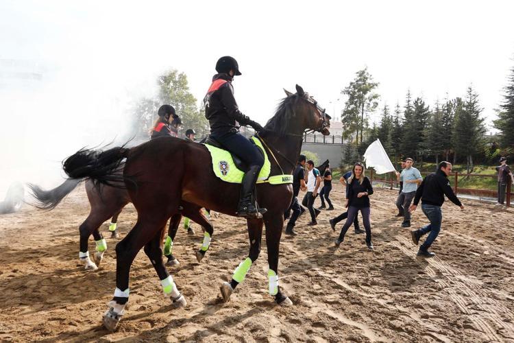 Ankara'da toplumsal olaylarda ve devriye hizmetlerinde görev alan Emniyet Genel Müdürülüğü Çevik Kuvvet Şubesi polis atlı birlikleri, sıkı bir eğitimden geçiyor. 'Temel at biniciliği' ve 'ileri düzey binicilik'ten oluşan iki aşamalı eğitimlerde polisler, senaryo gereği izinsiz gösteri yapan grubu başarıyla müdahale etti.