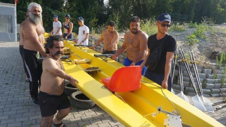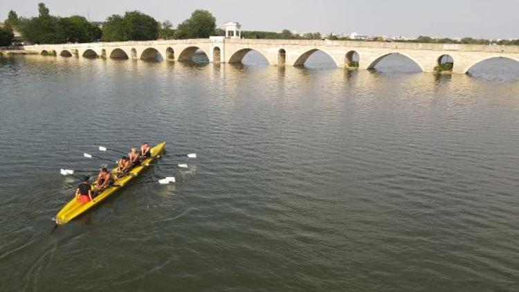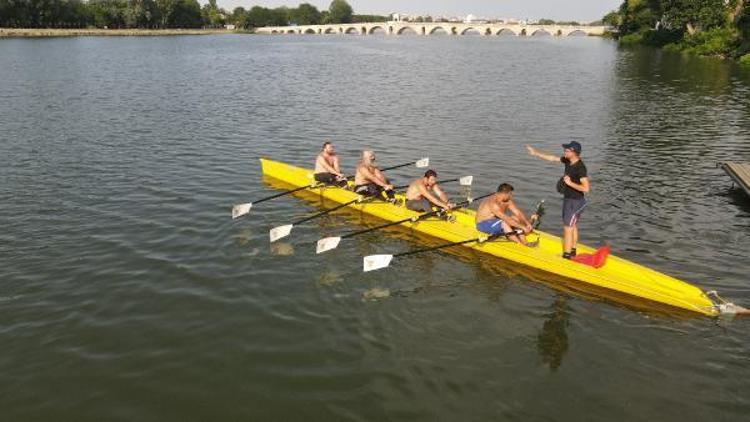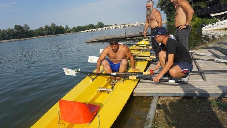 Edirne'de bu yıl 662'ncisi gerçekleştirilecek tarihi Kırkpınar Yağlı Güreşleri öncesinde başpehlivanlar Recep Kara, Abdullah Güngör, Salih Erinç ve Atilla Güzel, 2024'te Ümitler (U23) Avrupa Kürek Şampiyonası'na ev sahipliği yapacak Meriç Nehri'nde kürek çekti.