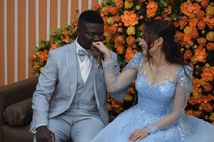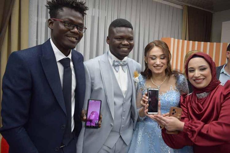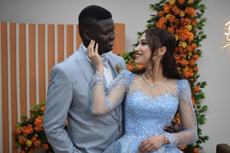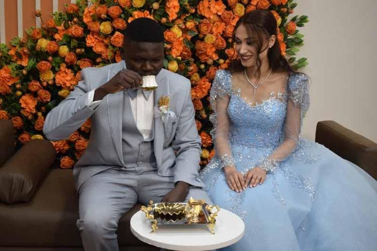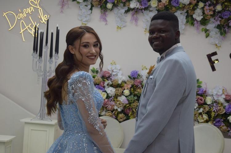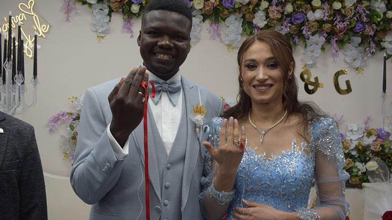 Muğla’da üniversite okurken kütüphanede tanışan Gülbahar Aslan (27) ile Nijerli Facial Yacine (30), Batman'da düzenlenen törenle nişanlandı.