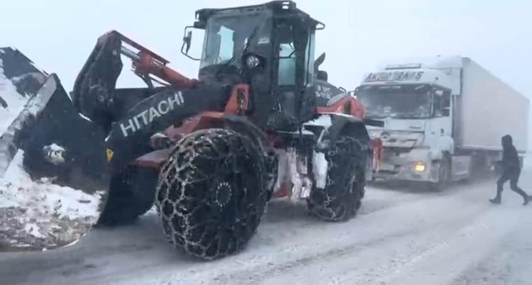 Batman'ın Gercüş ilçesi Ayrancı Geçidi'nde kar yağışı ve buzlanma nedeniyle aksamalar yaşandı. Geçitte mahsur kalan TIR için İlçe Özel İdare ekipleri, bölgeye sevk edildi. Ekipler, zincir takılı kepçe ile TIR'ı kurtarıp, güvenli alana götürdü.