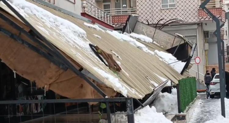 Gap Mahallesi'nde 2504’üncü Sokak'ta bugün öğleden sonra, bir iş yerinin sundurması üzerinde biriken kar nedeniyle çöktü. Olayda yaralanan olmazken, iş yerinde hasar oluştu.