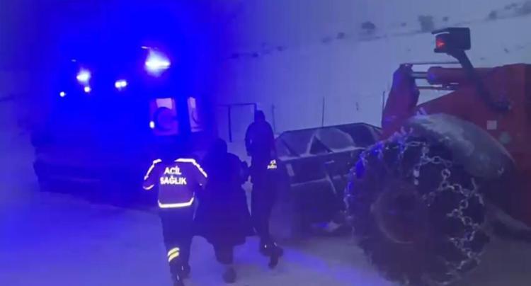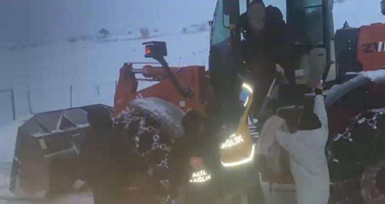 YOLU KARDAN KAPANAN KÖYDE HAMİLE KADIN AMBULANSA ULAŞTIRILDI