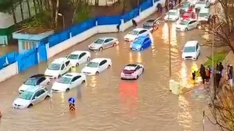 Kentte sabah saatlerinde etkili olan sağanak, hayatı olumsuz etkiledi. Belde Mahallesi ile bazı ara sokaklarda yağmur suyu kanalları ve mazgalların tıkanması sonucu su taşkınları yaşandı. Yollar göle dönerken, sürücüler ve yayalar zor anlar yaşadı. Park halindeki birçok araç su içinde kalırken, bazı iş yerlerini de su bastı. Belediye ekipleri ile esnaf, tıkanan mazgalları açmak için çalışma yürüttü, tahliye çalışması başlatıldı.