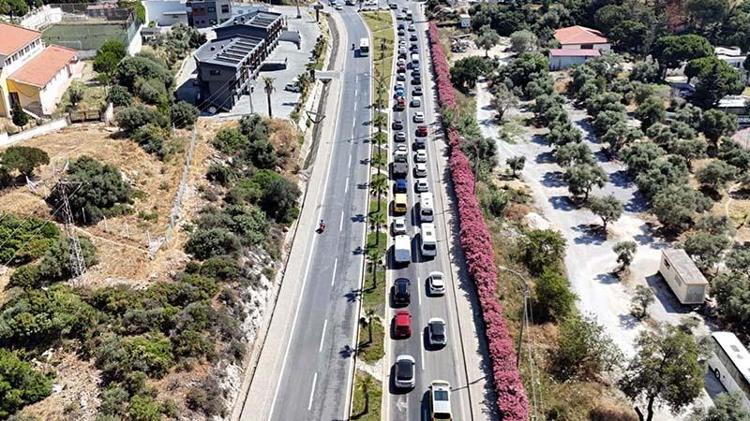 Bayramda Kuşadası'na tatilci akını; araç kuyrukları dronla görüntülendi
