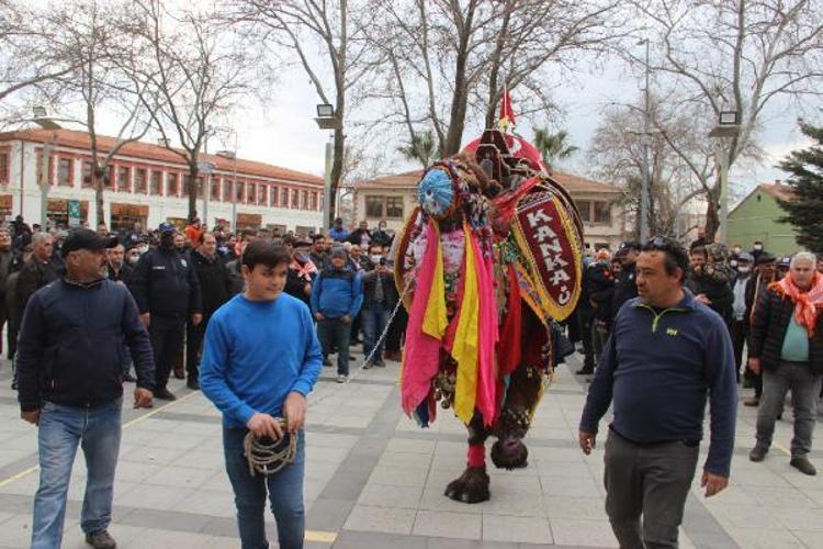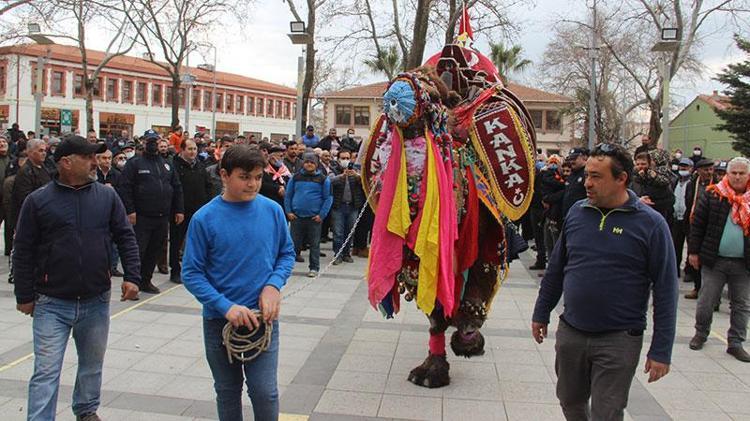 Yarışmaya katılan develer ilçede gezdirildi, ortaya renkli görüntüler çıktı.