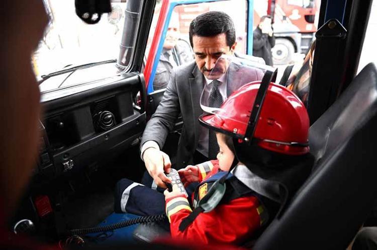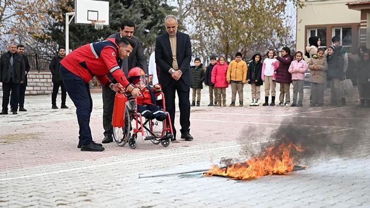 İtfaiyeci kıyafetleri giydirilen Öndüç, yangın tatbikatında alevleri söndürdü. Orduzu Mahallesi’nde Orduzu Nadire Dernek Ortaokulu’nda eğitim gören Muhammed için hazırlanan etkinlikte, itfaiye ekipleri de hazır bulundu.