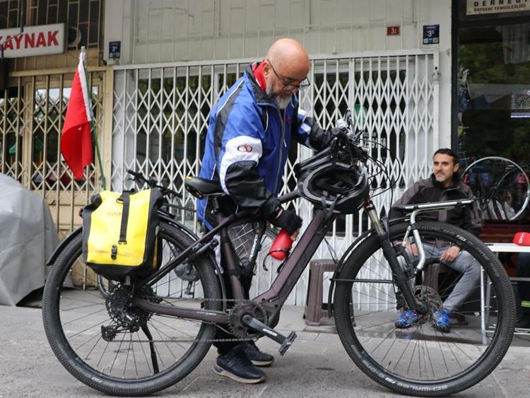 Belçika'nın Anvers şehrinde yaşayan evli ve 5 çocuk babası Mustafa Öz, 2019 yılında bisikletiyle 3 bin 400 kilometrelik yolu katederek memleketi Kayseri'ye geldi.