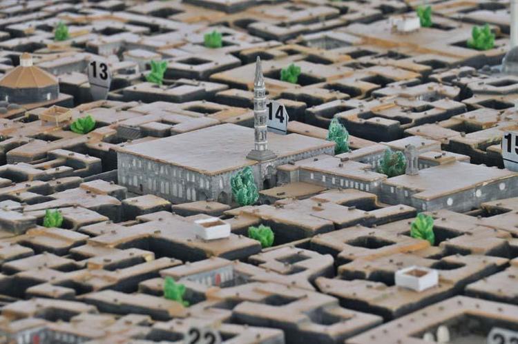 Ölçeğe göre çevresi 21 metre. En yüksek minaresi 21 santim. Bir de maketin içindeki bütün yapıları numaralandırdım. Maketin içindeki 21 numara da maketin bulunduğu alanı işaret ediyor. 21 Eylül’de bitti. Plaka 21 ve 21’inci asırda bitti. Çoğu tesadüf yani. Surların dış kısmı 5 bin 230 metre, ölçeğe göre 21 metredir.