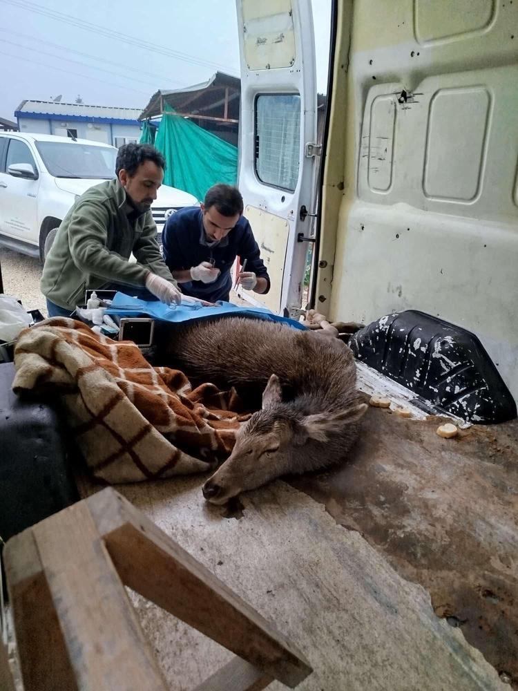 Belediye personelinin bulduğu yaralı karaca tedaviye alındı