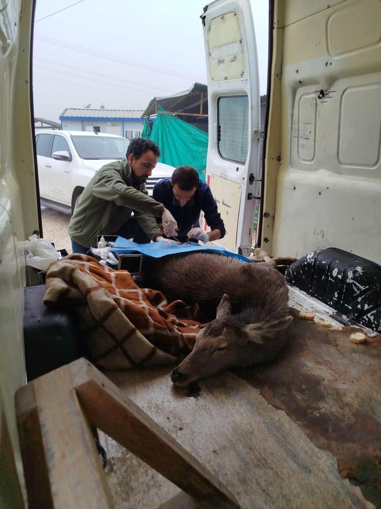 Koruma altındaki türlerden olan karaca ile ilgilenen belediye personeli, durumu Doğa Koruma ve Milli Parklar Şube Müdürlüğü ekiplerine bildirdi. Gelen ekipler, yaralı hayvanı alıp, merkeze götürdü. Karaca, tedavisi tamamlandıktan sonra tekrar doğaya salınacak.