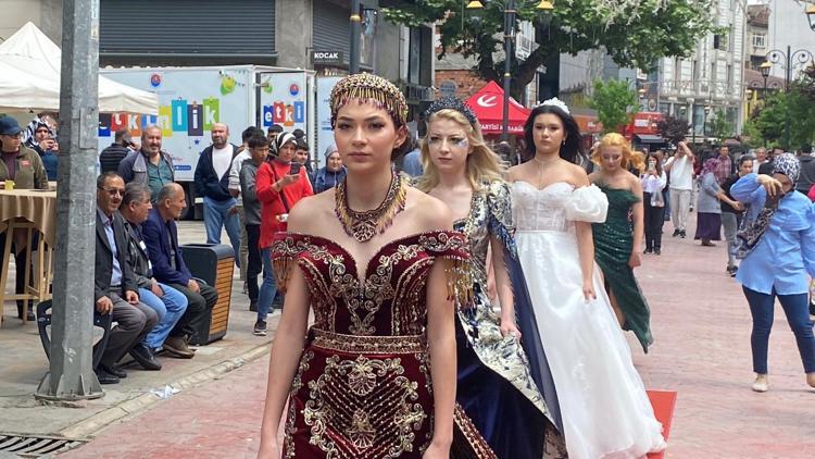 Caddede kurulan kırmızı halı üzerinde modellerin yürüyüşü ilgi gördü. Ortaya renkli görüntüler çıkarken, vatandaşlar da modellerle fotoğraflar çekildi.