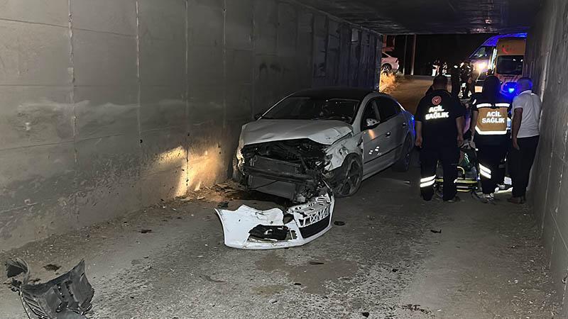 Kütahya’da alt geçidin beton duvarına çarpan otomobilin sürücüsü R.Ö.Ö. (40) ile yanındaki eşi 2 çocuğu yaralandı. Sürücü R.Ö.Ö.’nün, 1,18 promil alkollü olduğu tespit edildi.