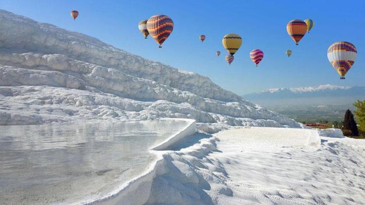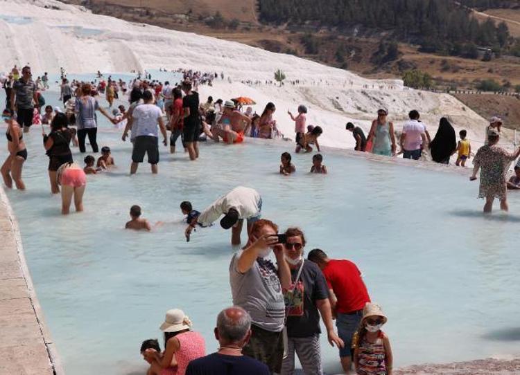 Beyaz renkli travertenleriyle dünyaca ünlü Pamukkale, pandemi nedeniyle kötü geçirdiği yılların ardından bu yıl yerli ve yabancı turistlerin akınına uğruyor.